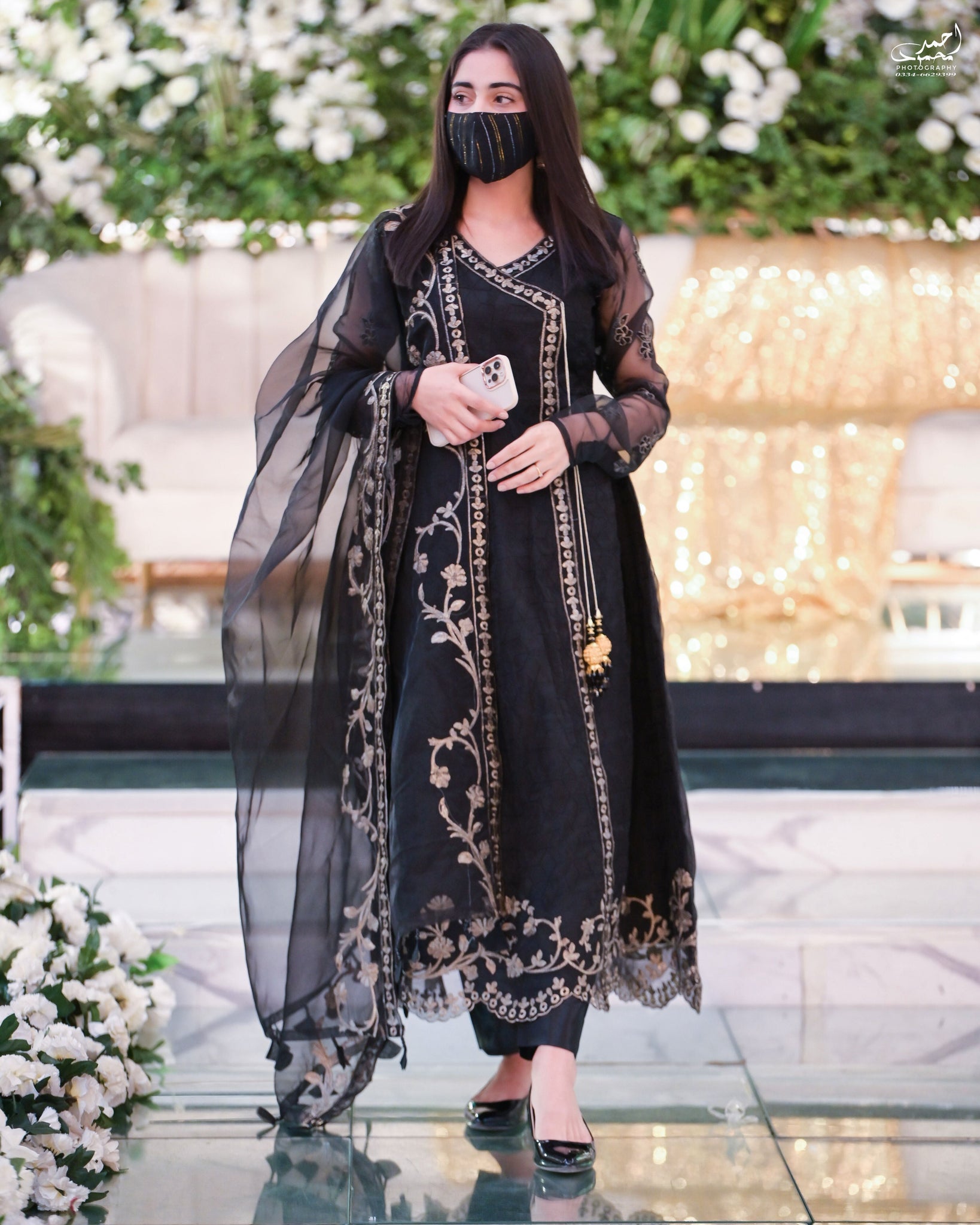 Front full handwork with sequins embroidered on fine organza Sleeves fully embroidered with handwork on fine...